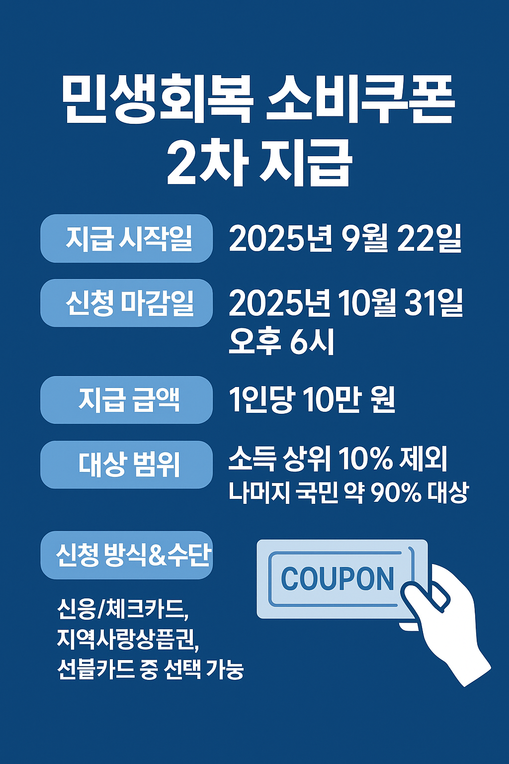 - 신청기간(2차): 2025-09-22(월) 오전 9시 ~ 2025-10-31(금) 오후 6시.