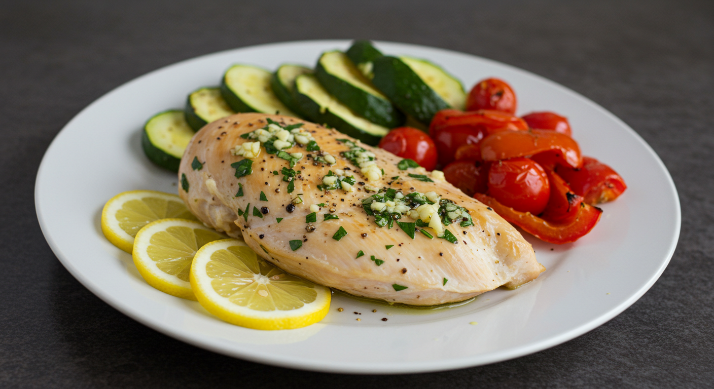 허브 닭가슴살 구이와 구운 채소