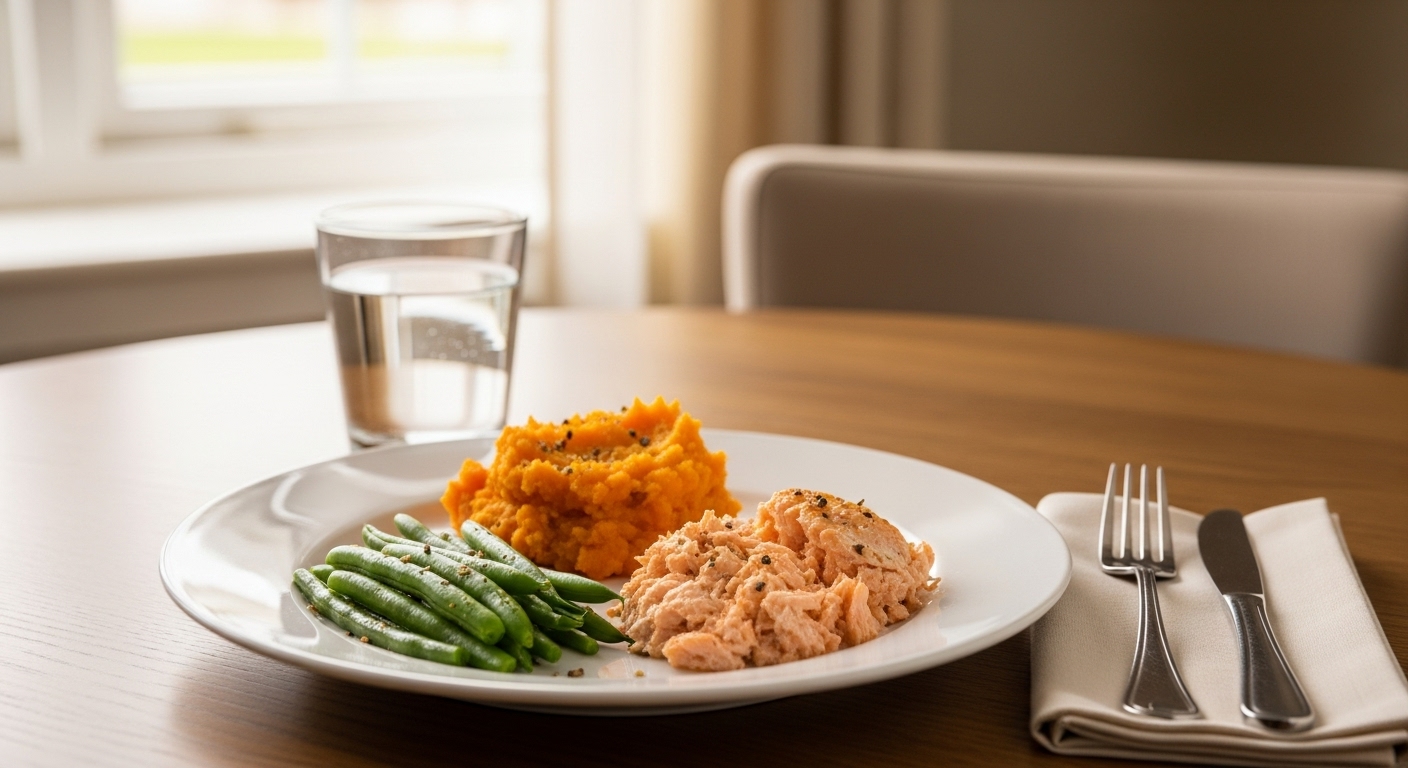 아침 식사로는 닭가슴살 채소죽에 계란찜과 부드러운 김치를 곁들이고, 두유나 미지근한 우유 한 잔을 함께 마십니다. 죽은 쌀을 물에 충분히 불린 후 닭고기와 당근, 애호박을 잘게 다져 넣고 푹 끓이며, 참기름으로 고소한 맛을 더합니다. 점심에는 소면을 부드럽게 삶아 따뜻한 국물에 말고, 두부조림과 으깬 감자, 부드러운 생선살을 곁들입니다. 간식으로는 바나나 한 개나 요구르트, 부드러운 카스텔라 한 조각을 오전과 오후에 나누어 먹습니다. 저녁 식사는 쇠고기 무죽이나 전복죽으로 하고, 두부된장국과 시금치나물, 호박찜을 함께 내놓습니다. 취침 전에는 따뜻한 우유나 꿀물을 마시면 숙면에 도움이 되며, 모든 음식은 너무 짜거나 자극적이지 않게 간을 약하게 해야 합니다. 식사 시간은 아침 7시, 점심 12시, 저녁 6시로 규칙적으로 유지하고, 간식은 오전 10시와 오후 3시에 제공하는 것이 이상적입니다.