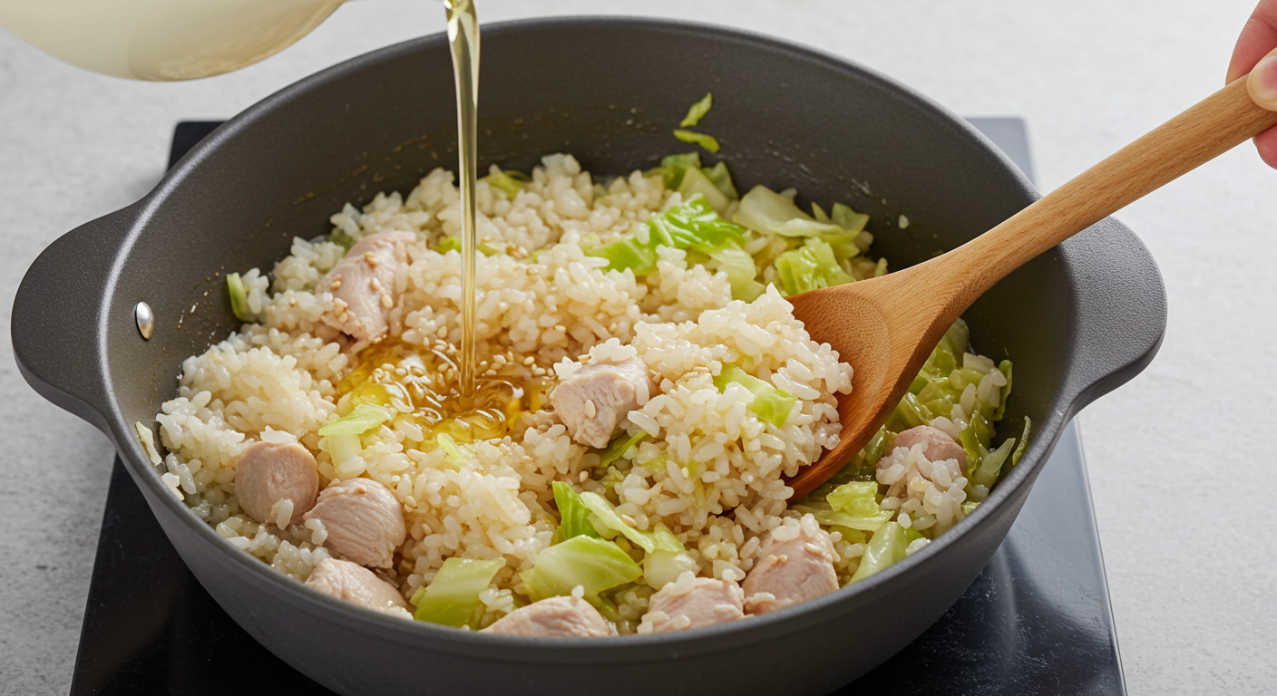 1. 불린 쌀에 참기름을 넣고 중불에서 쌀알이 투명해질 때까지 볶아줍니다. 2. 물 5컵을 붓고 끓이다가 끓어오르면 약불로 줄여 20분간 저어가며 끓입니다. 3. 쌀알이 퍼지면 다진 양배추와 닭가슴살을 넣고 10분간 더 끓입니다. 4. 양배추가 완전히 무르익고 닭고기가 익으면 소금으로 아주 약하게 간을 맞춰 완성합니다. 양배추의 비타민U가 위 점막을 보호하고, 부드럽게 갈린 쌀은 위에 부담 없이 영양을 공급합니다. 닭가슴살은 저지방 단백질로 소화가 잘 되며, 참기름의 고소한 맛이 자극적인 양념 없이도 풍미를 더합니다.