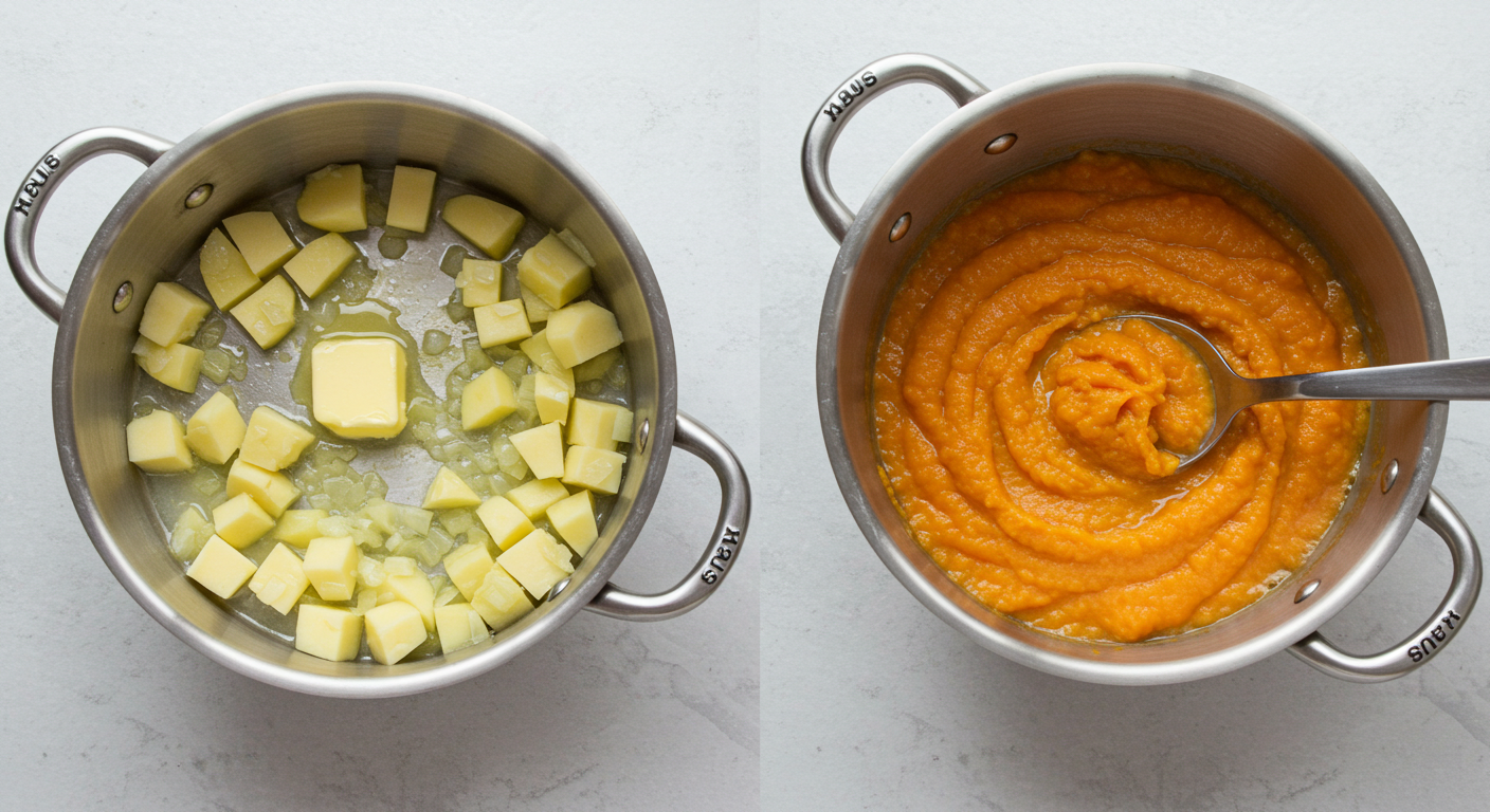 1. 냄비에 버터를 녹이고 양파를 약불에서 투명해질 때까지 볶습니다. 2. 감자와 당근을 넣고 물 3컵을 부어 중불에서 20분간 삶습니다. 3. 채소가 부드러워지면 불을 끄고 믹서기나 핸드블렌더로 곱게 갈아줍니다. 4. 다시 냄비에 담고 저지방 우유를 넣어 약불에서 5분간 더 끓이며 소금으로 간을 맞춥니다. 감자의 알칼리 성분이 위산을 중화시키고, 당근의 베타카로틴은 위 점막 재생을 돕습니다. 부드럽게 갈아서 만든 수프는 씹는 부담이 없어 위가 약한 사람도 편하게 먹을 수 있으며, 따뜻하게 먹으면 위를 편안하게 해줍니다.